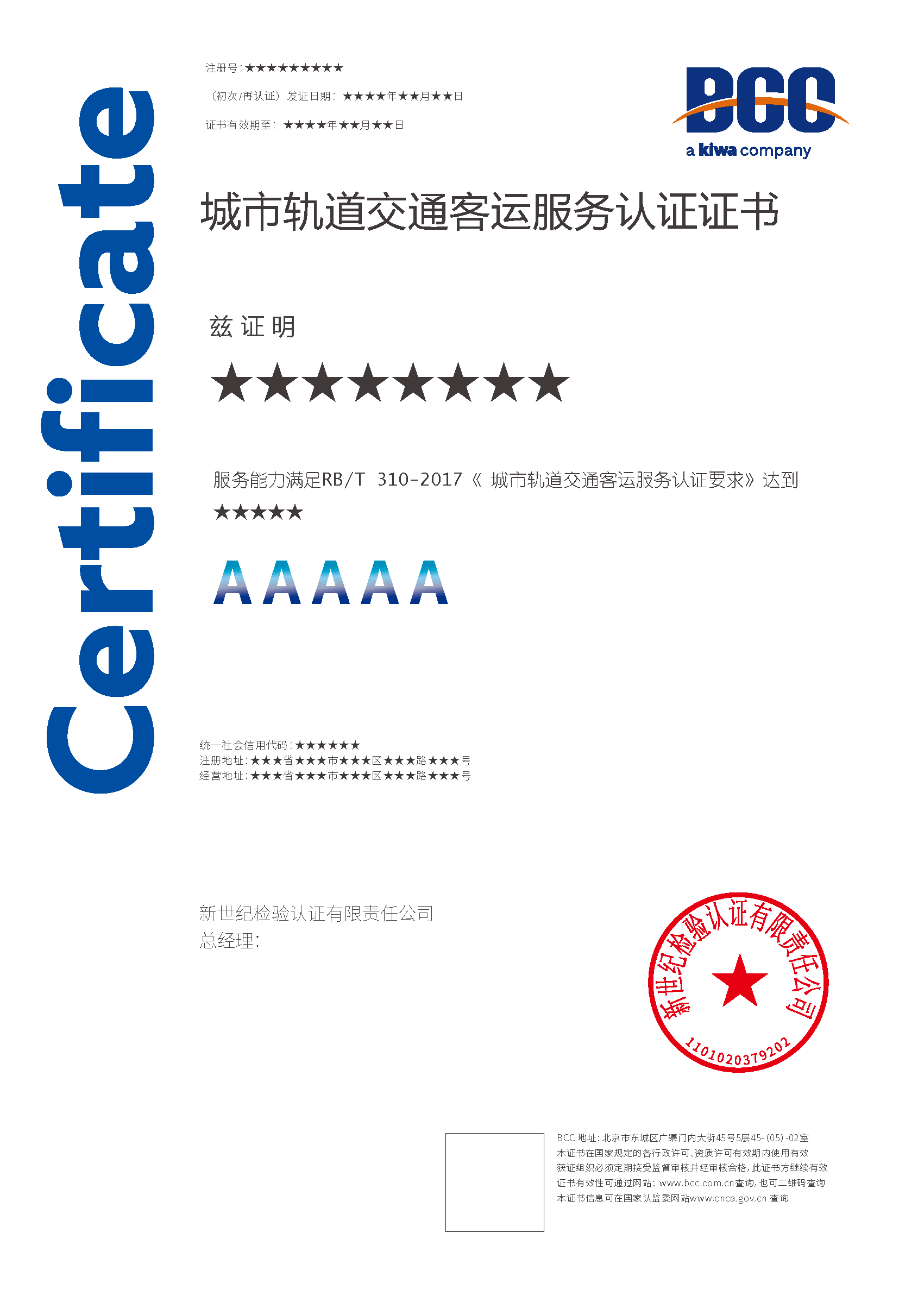 申請(qǐng)城市軌道交通客運(yùn)服務(wù)認(rèn)證的組織應(yīng)當(dāng)向BCC提交書面申請(qǐng)書并提供所需資料:
