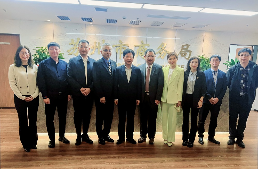 11月16日上午,Kiwa 中國(guó)董事總經(jīng)理、首席執(zhí)行官陶然亭帶隊(duì)拜訪了蘇州市商務(wù)局,與局長(zhǎng)孫建江、副局長(zhǎng)張皓,就雙方進(jìn)一步深入合作進(jìn)行了交流。陶總介紹了KIWA集團(tuán)的發(fā)展歷程和全球業(yè)務(wù),以及kiwa 在蘇州的兩家企業(yè)普德光伏(蘇州)有限公司和上海恩可埃認(rèn)證有限公司蘇州分公司的業(yè)務(wù)發(fā)展情況。孫局長(zhǎng)就蘇州在外貿(mào)領(lǐng)域的發(fā)展以及商務(wù)部門對(duì)蘇州企業(yè)的支持工作做了介紹。