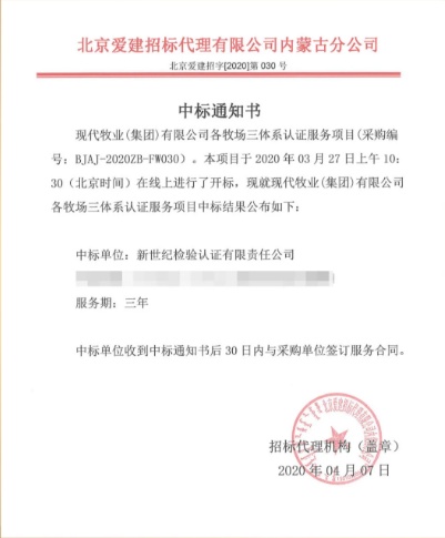 本次競標(biāo)活動吸引了很多認證機構(gòu)參與,也得到BCC的高度重視。BCC組織經(jīng)營管理部、體系認證事業(yè)部、內(nèi)蒙古分公司會同行業(yè)專家制定專項認證服務(wù)方案,積極展示BCC在行業(yè)、技術(shù)、服務(wù)能力方面的優(yōu)勢。最終,BCC積極、認真、專業(yè)的態(tài)度得到了現(xiàn)代牧業(yè)的認可。