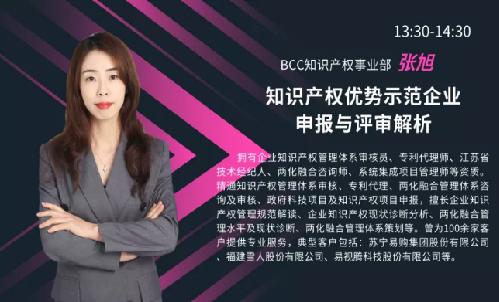 活動在BCC知識產(chǎn)權(quán)事業(yè)部總經(jīng)理侯璐瑤的精彩介紹中拉開帷幕。半個小時的活動預(yù)熱環(huán)節(jié)中,侯璐瑤對BCC的各項(xiàng)業(yè)務(wù)以及本次活動的講師進(jìn)行了簡短的介紹,并宣傳了疫情期間推出的認(rèn)證費(fèi)用減免政策,表達(dá)了我們對依托自身專業(yè)服務(wù)能力,為客戶進(jìn)行知識產(chǎn)權(quán)管理帶來更大的幫助的信心。