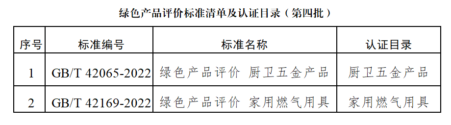 關(guān)于發(fā)布綠色產(chǎn)品評(píng)價(jià)標(biāo)準(zhǔn)清單及認(rèn)證目錄(第四批)的公告